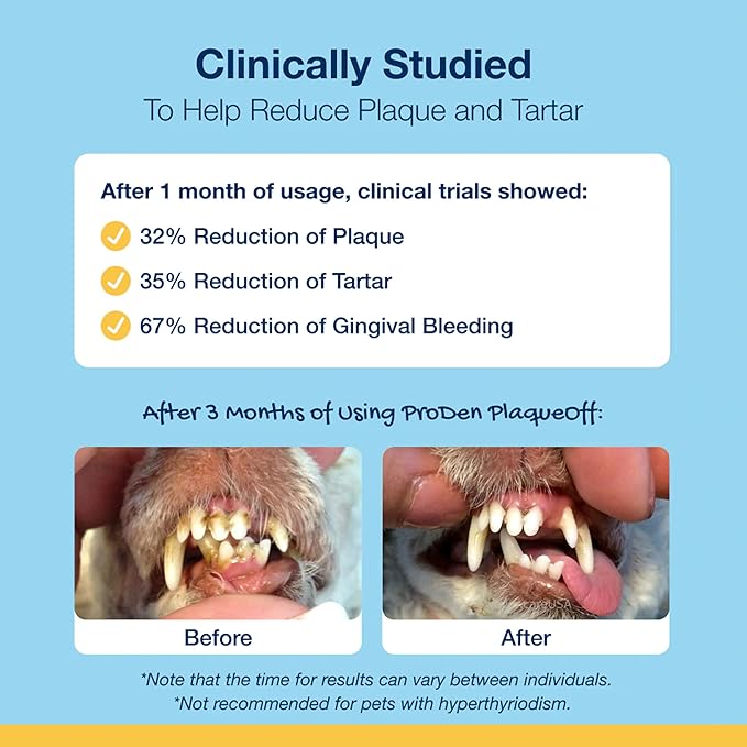 - Superior Pet Dental Care: Made with no additives, flavors, or artificial ingredients, ProDen's pet teeth cleaning power comes from sustainably harvested deep sea kelp for clean teeth and healthy gums.