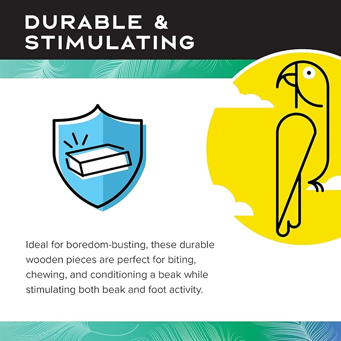 - STIMULATING: Ideal for boredom busting, wooden pieces of these large bird toys are great for biting, chewing, and conditioning a beak while stimulating both beak and foot activity