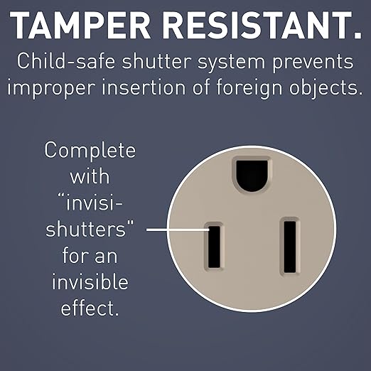 - Use - This tamper resistant outlet has a patented shutter system that helps prevent improper insertion of foreign objects and now with a black "invisi-shutters" for an invisible effect preferred by end users