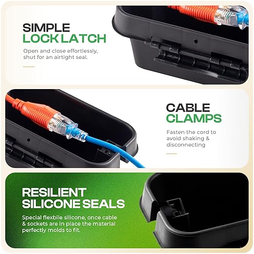 - VERSATILE WATERPROOF ELECTRICAL BOX FOR SMALL POWER NEEDS – This waterproof electrical box provides robust protection for small to medium cables and cords, ideal for outdoor holiday lights, garden tools, or compact electrical setups.