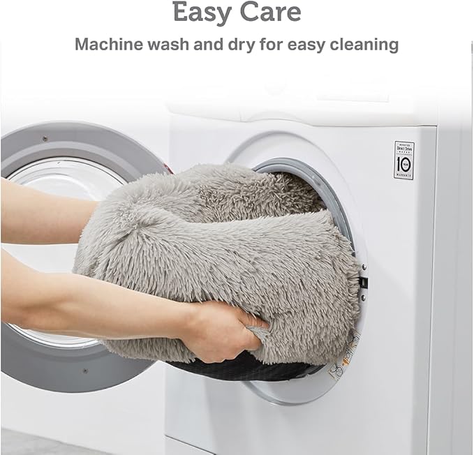 Friends Forever Luna Donut Cat Bed Cave, Soft Faux Fur Hooded Blanket Dog Couch For Indoor Pet, Fluffy Calming Plush Shag, Cozy Round Cushion, Machine Washable Cuddler, Self Warming, Grey