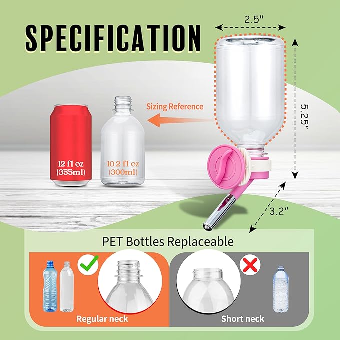 - Mini-Sized Nozzle: 10 mm nozzle recommended for guinea pigs, ferrets, hamsters, and bunnies; 10.2 fl.oz capacity; made of BPA-free material.