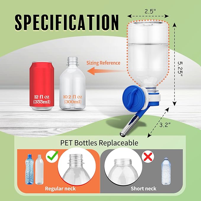 - Mini-Sized Nozzle: 10 mm nozzle recommended for guinea pigs, ferrets, hamsters, and bunnies; 10.2 fl.oz capacity; made of BPA-free material.