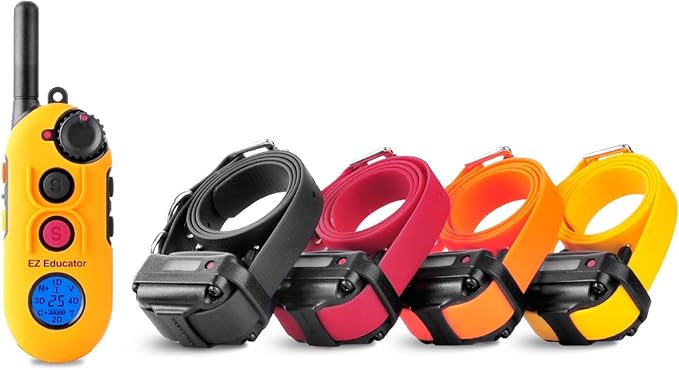 Educator EZ 1/2 Mile Dog Training Collar with Ergonomic Remote, Safe Humane Vibration Stimulation, Pavlovian Tone, Waterproof, Odorproof Biothane Collar, Night Light, Rechargeable, 4 Dog, Yellow
