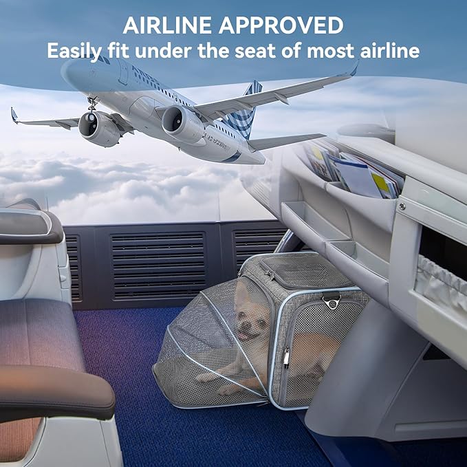 Petsfit Expandable Cat Carrier Dog Carriers,Airline Approved Soft-Sided Portable Pet Travel Washable Carrier for Kittens,Puppies,Removable Soft Plush mat and Pockets,Locking Safety Zippers