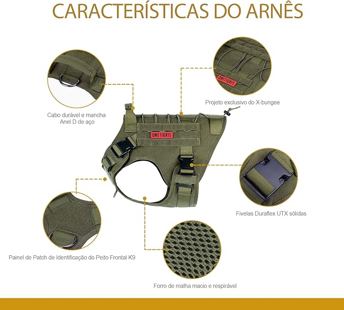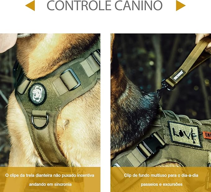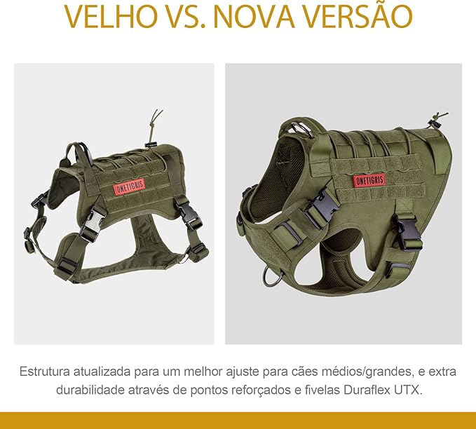 - MOLLE System & Military Style: Each side features two MOLLE straps as well as hoop & loop strips panel to easily attach molle pouches or ID panels; OneTigris harness is not designed to bear heavy weights and we advise against relying solely on the grab handle to carry your dog