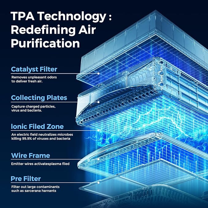 Airdog X5 Air Purifier for Home Large Room with Washable filter, TPA Technology Covers up to 1614 Ft²,Remove Pet Hair, Allergies, Dust, Smoke, Odor, Whisper Quiet with Air Quality Monitor