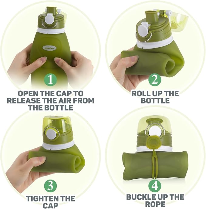 Kemier Collapsible Silicone Water Bottles-750ML,Medical Grade,BPA Free Travel Water Bottle Can Roll Up,26oz,Leak Proof Foldable Sports & Outdoor Water Bottles