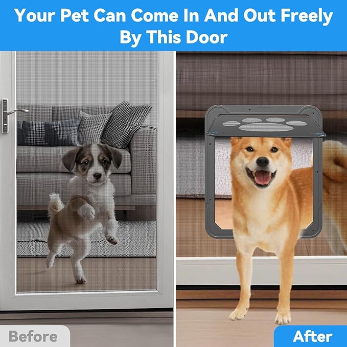 - Effortless Entry & Exit Home: NAMSAN screen dog door is designed for dogs, cats, and other pets to enter and exit effortlessly. The magnetic door flap ensures it stays closed after your pet passes through, the dual blue side locks allow you to securely lock the door when needed.