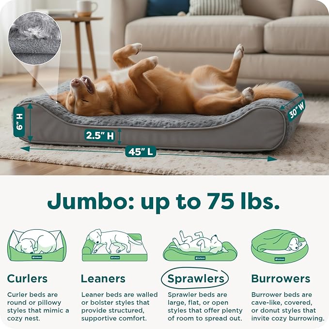 - A Perfect Fit For Every Sleep Style: Don't settle for a rigid, one-size-fits-all bed. Our open-style lounger is designed for your pet's unique habits, creating a calming dog bed space measuring at 45”L x 30"W x 6"H. We crafted the bolstered edges to provide a secure headrest for "leaners," while the open sleep surface gives "sprawlers" the room they need to stretch out in total comfort.