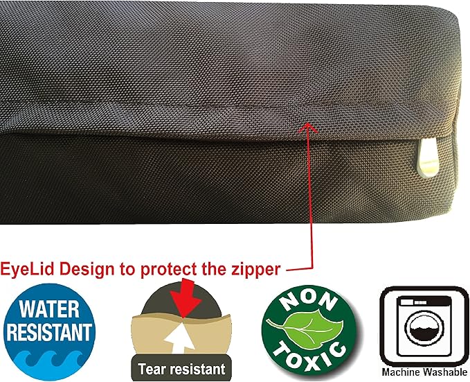 - 1680D BALLISTIC COVER - Removable washable external cover with strong zipper in gusset style and extra stitching to prolong the life of the bed, wash after wash. This heavy duty ballistic nylon cover will resists light chewing, scratching, water, hair, dirt, and odors, and can be easily wiped down or machine-washed.