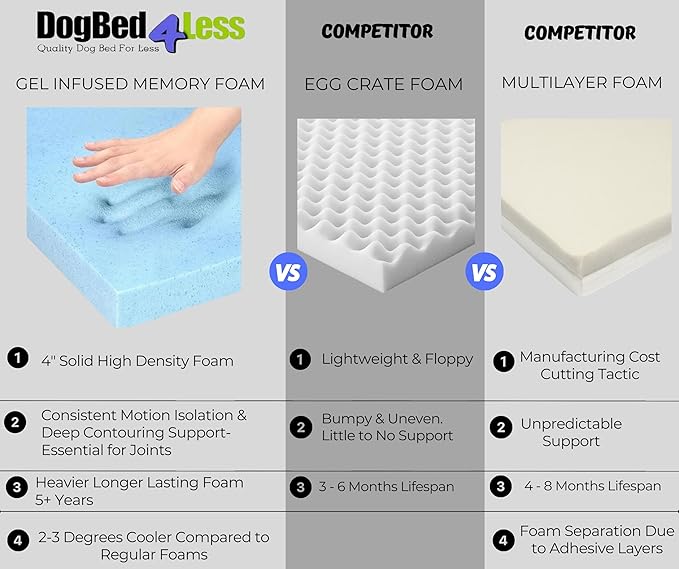 - ORTHOPEDIC SUPPORT - Solid 41"X27"X4" top rated gel infused temperature regulating memory foam provide the support and relieves the pain of arthritis, will not flat overtime to promote better sleep and healthy joint.