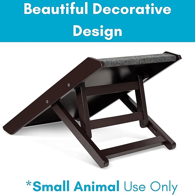 BIRDROCK Home Adjustable Pet Ramp for Small Dogs, Cats, Puppies - Foldable Wooden Dog Ramp for Couch, Bed, Car - Indoor or Outdoor- Safe, Portable, Non-Slip Carpet - 13", Espresso