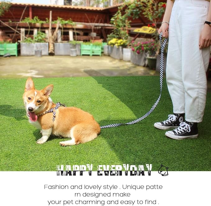 QQPETS Dog Harness Leash Set Adjustable Heavy Duty No Pull Halter Harnesses for Small Medium Large Breed Dogs Back Clip Anti-Twist Perfect for Walking (S(14"-20" Chest Girth), Black Plaid)