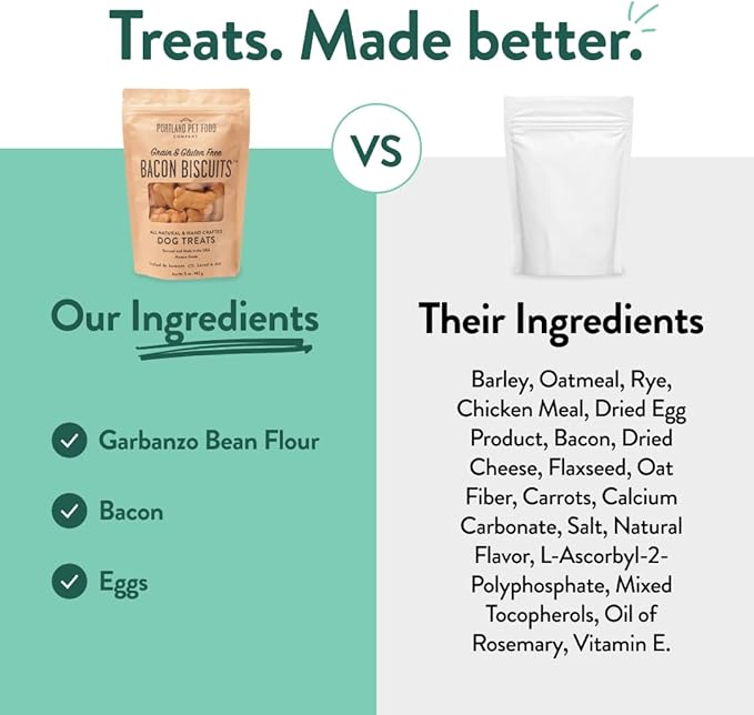 Portland Pet Food Company Bacon Dog Treats Healthy Biscuits for Large Medium & Small Dogs - Grain-Free, Human-Grade, All Natural Dog Cookies, Snacks & Training Treats - Made in The USA - 5 oz