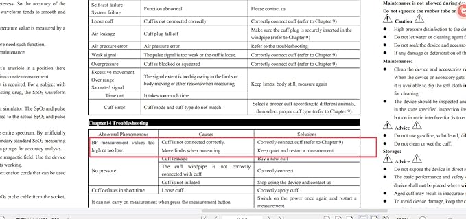 - Please kindly pay more attention on this:If there's cuff error message on the screen.The causes may be Cuff mode and cuff type don not match.Solution should be:Select a proper cuff according to different animals.Then select proper cuff type.More instructions please kindly see the user manual.