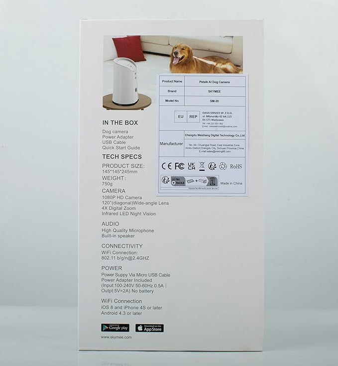 - 【TALK】 2-Way Audio: Petalk AI will notify you when your pet trick or treat by motion detection. Know what's going on at home and keep your dog calm down.