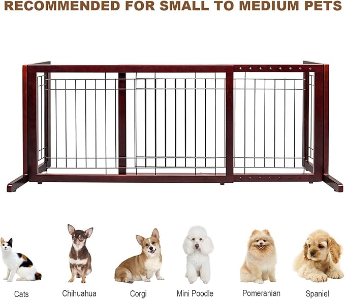Bonnlo Free Standing Dog Gate, 37" - 68" Wide Pet Gate for Fireplace Stairs Doorways, Wooden Adjustable Pet Fence Indoor, Christmas Tree Gate (Cherry)