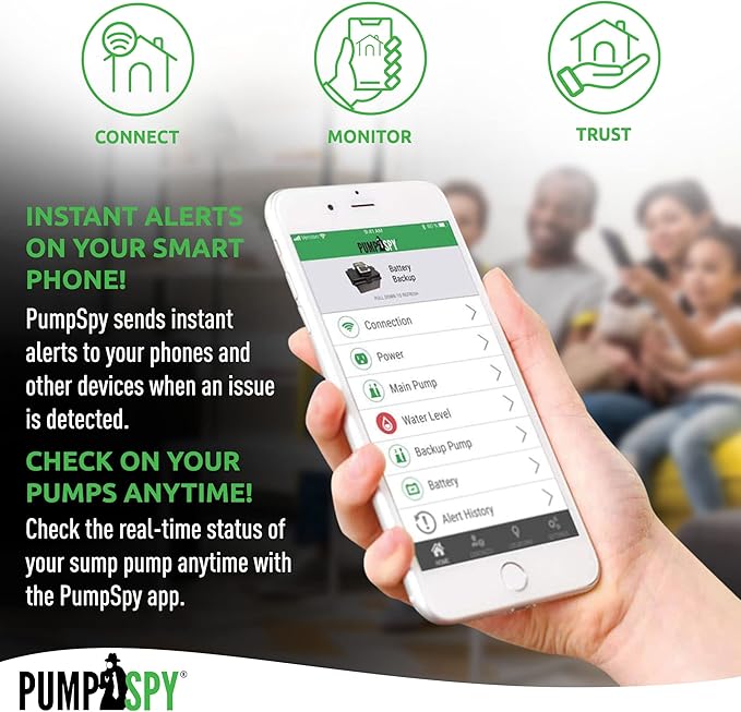 - MORE FEATURES FROM THE APP: Get instant alerts on your phone with the PumpSpy app that you can install on Apple and Android mobile devices. Receive alerts when the primary or backup sump pump malfunctions, pumps run too long, pumps draw excessive current, there is a high water level, a power outage, and a WiFi connection loss. Alerts are sent via SMS, email, or push notifications, so you can act quickly and prevent flooding problems in your home.