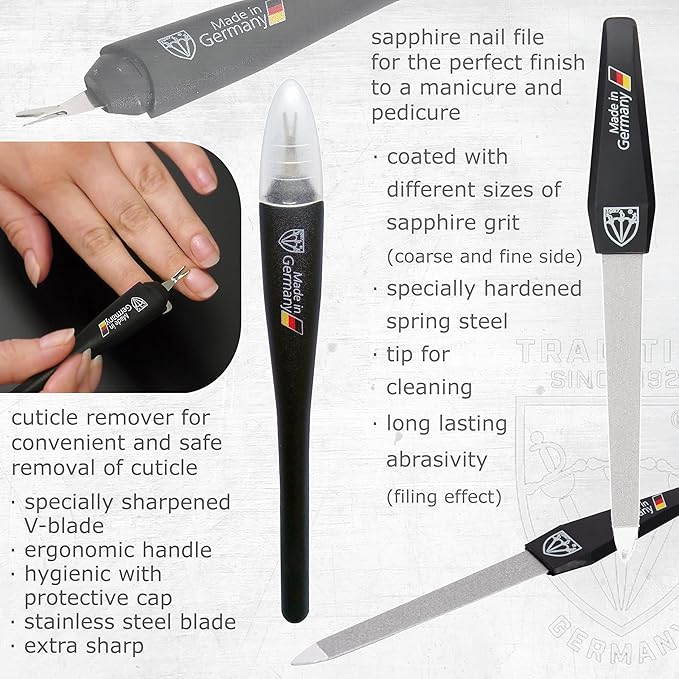 - NAIL CARE KIT from 3 Swords Germany with professional manicure and pedicure tools. Our sets for home and travel use convince trough highest levels of quality, modern design, durability and German engineering combined with a first class customer service.