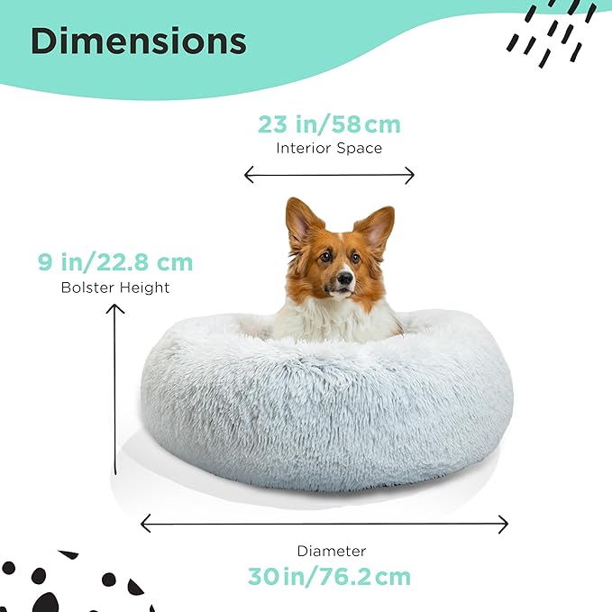 Best Friends by Sheri The Original Calming Donut Dog Bed – Washable Plush Pet Bed for Medium Breeds up to 45 lbs, Shag Faux Fur, Frost Gray, Medium (30" x 30")