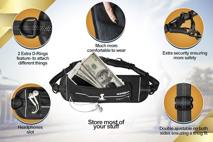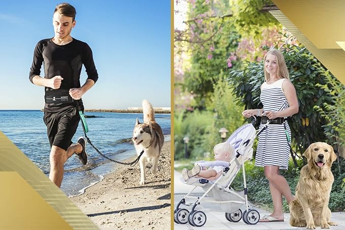 - Security clips on the belt - Unlike other handsfree leashes for dogs which can have your dog break free as a result of the belt unlatching, our professional belt leash for dog walking has a support mechanism that is designed with 2 stainless steel clasps that take all the tension off the plastic buckle and divide the pulling force to both sides of the belt! A perfect leash for running with your dog!