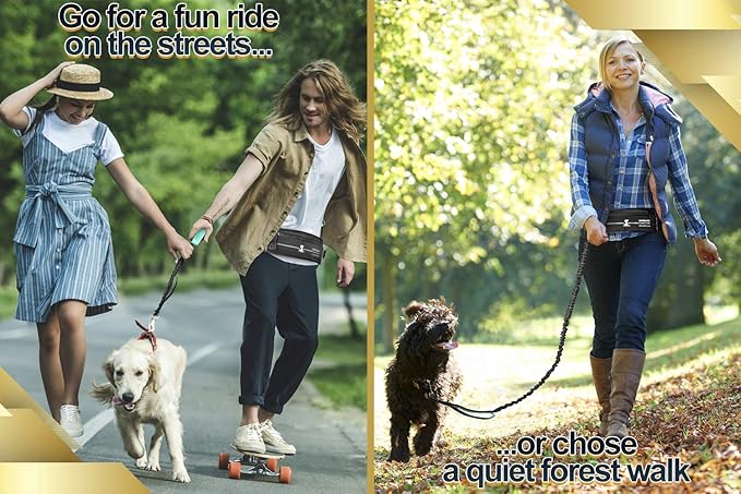 - Perfect Control - Being able to fully control your dog may be crucial, especially when crossing a busy street. The easy grip control handle on the bungee will allow you a firm, yet smooth hold on your dog whenever you need to keep it out of harm's way! This dog leash that goes around your waist is a perfect walking leash for dogs that pull.
