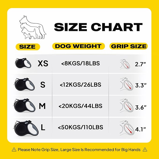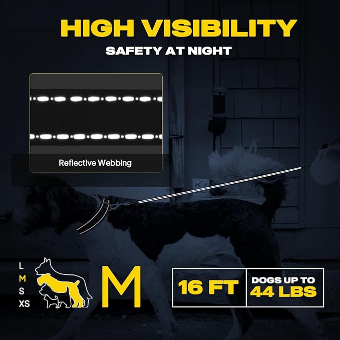 - HEAVY DUTY, DURABLE & STEADY - 16ft high strength nylon tape with durable rustproof swivel hook and steady impact-resistant ABS material, suitable for Small and Medium dogs or cats up to 44 lbs. Top durability Internal Coil Spring for Consistent Retraction several years.