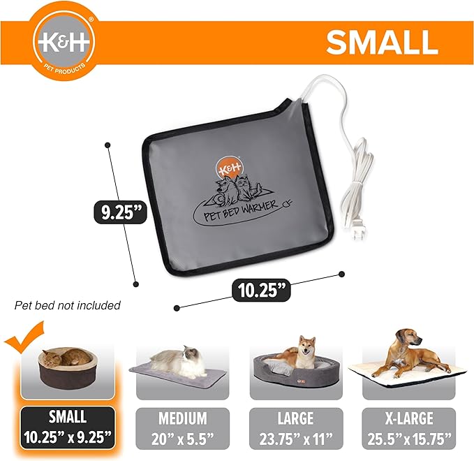 K&H Pet Products Pet Bed Warmer, Turn Any Pet Bed Into a Heated Cat or Dog Bed, Waterproof Indoor Heated Warming Pad Insert, Automatic Temperature, Safety Listed - Small 10.25 X 9.25in Gray