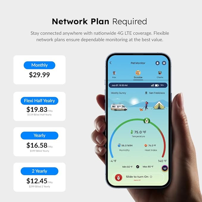 - 100% Cellular Connectivity: No Wi-Fi needed. Stay connected anywhere with 4G multi-carrier coverage. Receive accurate temperature, humidity, and power-loss alerts in RVs, campgrounds, parking lots, and remote areas. 4G plan subscription required (starts at $16.50/mo)