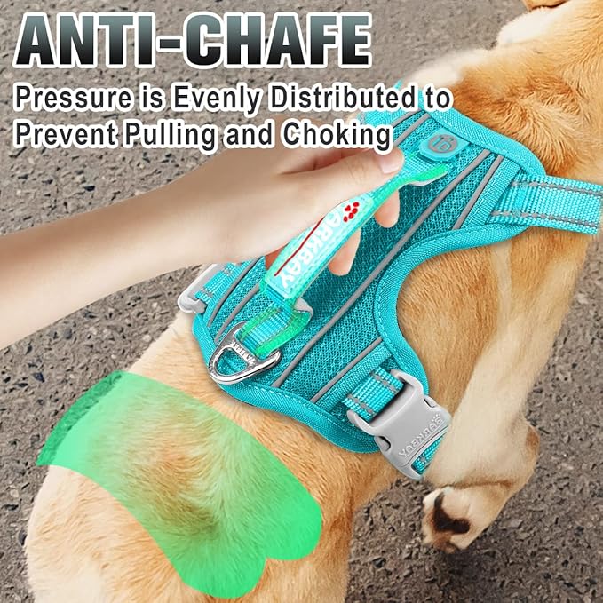 BARKBAY No Pull Dog Harness Large Reflective Dog Harness with Front Clip and Easy Control Handle for Walking Training Running with ID tag Pocket(Ocean Blue,XL)