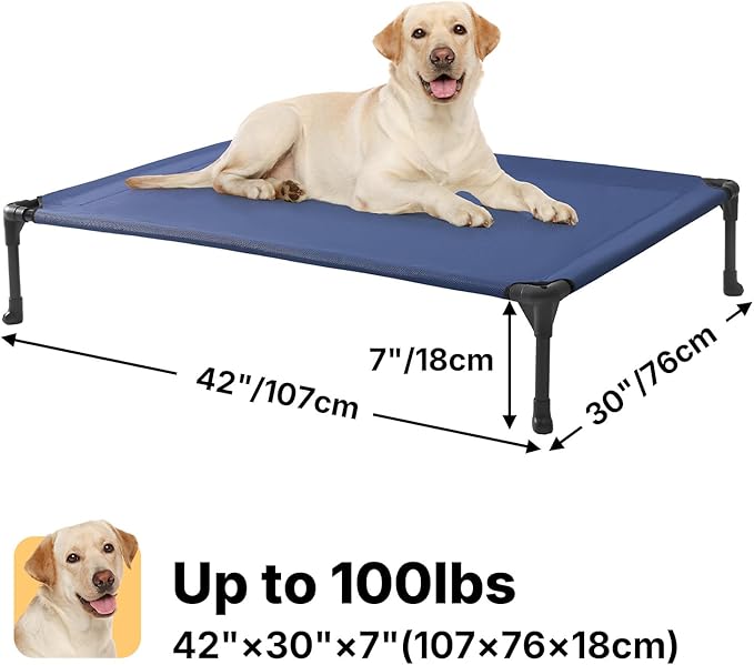 Veehoo Cooling Elevated Dog Bed, Portable Raised Pet Cot with Washable & Breathable Mesh, No-Slip Feet Durable Dog Cots Bed for Indoor & Outdoor Use, Large, CWC1803-L