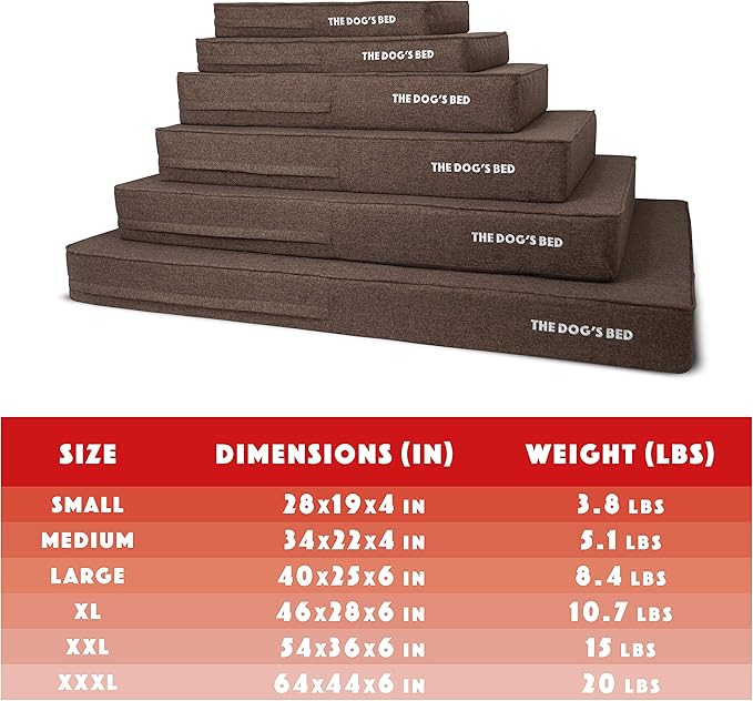 - Amazon's LARGEST DOG BED - XXXL Brown Linen 64x44x6” waterproof orthopedic dog bed. Solid 2” high density, orthopedic memory foam over a solid 4” base of high stability support foam with covers designed so that your bed fits your home decor seamlessly and your dog can stay close to your family