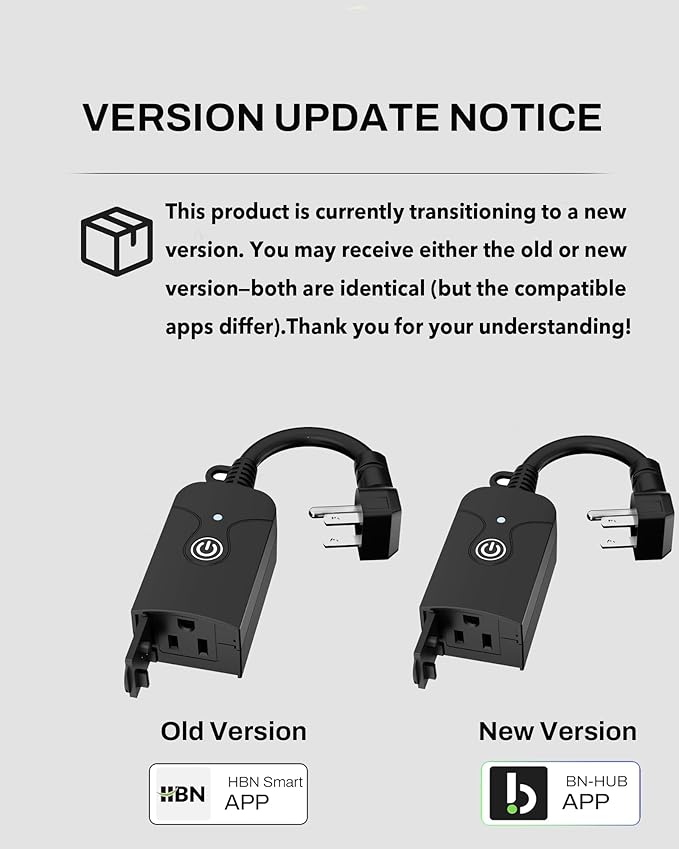 - Attention: You may receive either the old or new version-both are identical (but the compatible apps differ). The older version uses the HBN smart app; the newer version uses the BN-HUB app.