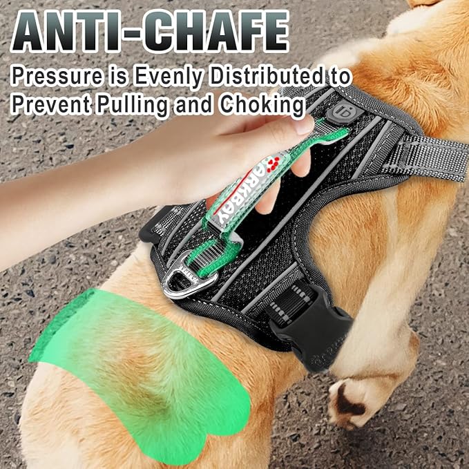 BARKBAY No Pull Dog Harness Large Reflective Dog Harness with Front Clip and Easy Control Handle for Walking Training Running with ID tag Pocket(Black,L)