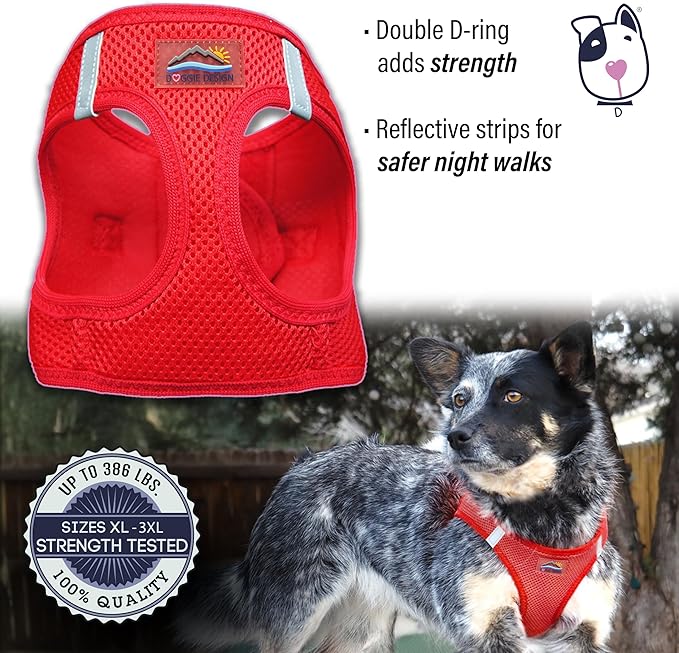 Doggie Design Dog Harness - No Choke Dog Harness, Dog Vest, Mesh Polyester, Pet Harness, Simple Step in and Go Design, Harness for Dog - Red, 2X-Large