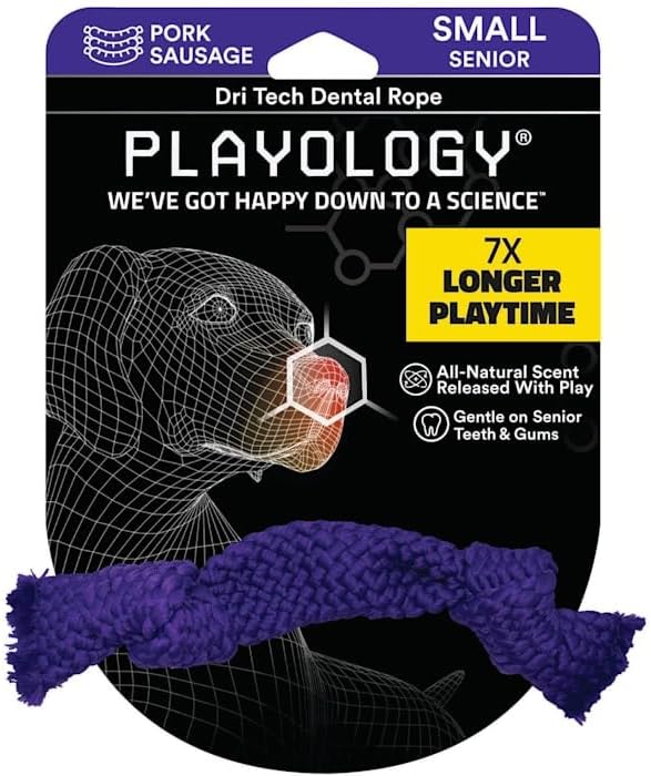 - MEET THE DRI-TECH DENTAL ROPE: Designed with soft materials, perfect for aging teeth and gums, and embedded with all-natural Pork Sausage scent, this is the perfect toy for senior pups who still want to play! Made with slobber wicking fibers, the Dri-Tech Dental Rope is great for older dogs that love to tug and chew. The Medium size is ideal for dogs 15-35lbs.