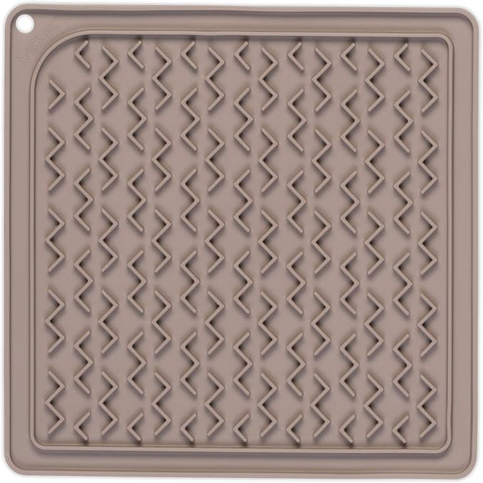 - SLOW FEEDER ALTERNATIVE – The groove design of this 8x8-inch square silicone mat will slow your pet’s intake of food while providing therapeutic benefit of licking. Spread kibble, wet food, soft treats, purees, supplements or any of your pet’s favorite treats on the mat and let their minds go to work. Mat works for all cats, puppies, and small dogs. Prolong enjoyment by freezing it before serving. Freezer and microwave safe.