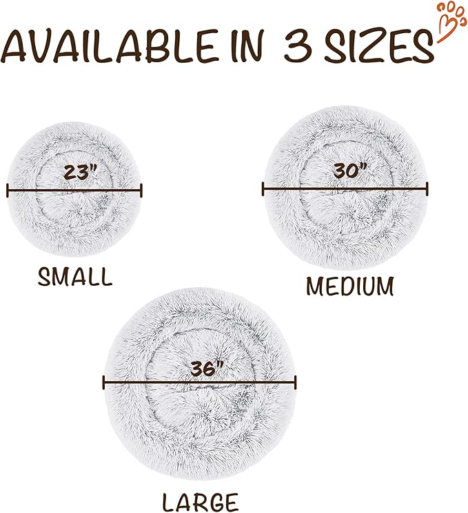 Friends Forever Donut Dog Bed Faux Fur Fluffy Calming Sofa For Medium Dogs, Soft & Plush Anti Anxiety Pet Couch For Dogs, Machine Washable Coco Pet Bed with Non-Slip Bottom, 30"x30"x7" Ivory