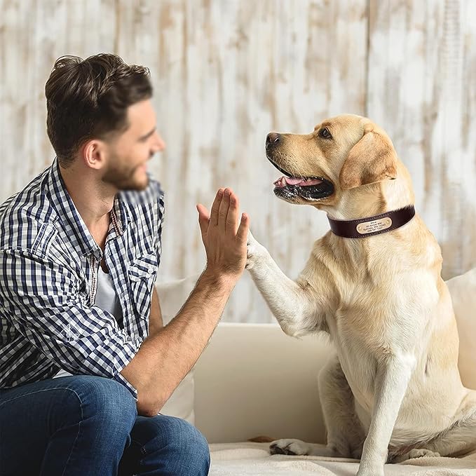 Didog Genuine Leather Dog Collars with Engraved Nameplate, Personalized Soft Leather Dog Collar with Custom ID Tag, Brown/Green/Red for Medium Large Dogs (XL,Brown)