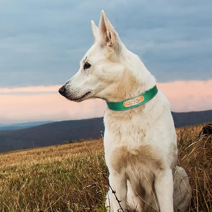Didog Genuine Leather Dog Collars with Engraved Nameplate, Personalized Soft Leather Dog Collar with Custom ID Tag, Brown/Green/Red for Medium Large Dogs (XXL,Green)