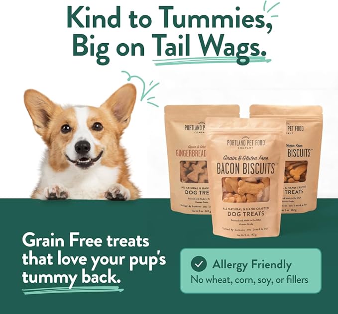 Portland Pet Food Company Natural Dog Treats Variety Pumpkin Gingerbread & Bacon Dog Biscuits - Grain-Free, Human-Grade Healthy Training & Snacks - Puppy, Small, Large Breed - Made in the USA - 3 Pack