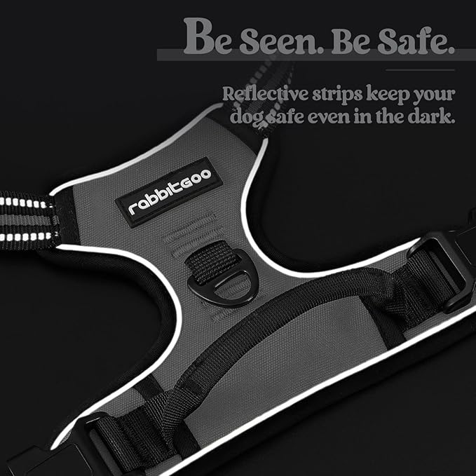 rabbitgoo Dog Harness No Pull with 2 Leash Clips, Adjustable Soft Padded, Reflective Oxford No Choke Pet Vest with Easy Control Handle for Large Dogs, Grey, L