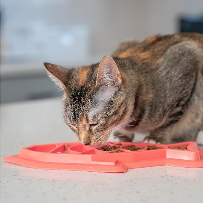 - Slow Feeder Cat Mat: Replaces the standard cat bowl and slows your cat's eating pace; Helps prevent bloating and indigestion while providing fun enrichment during mealtime