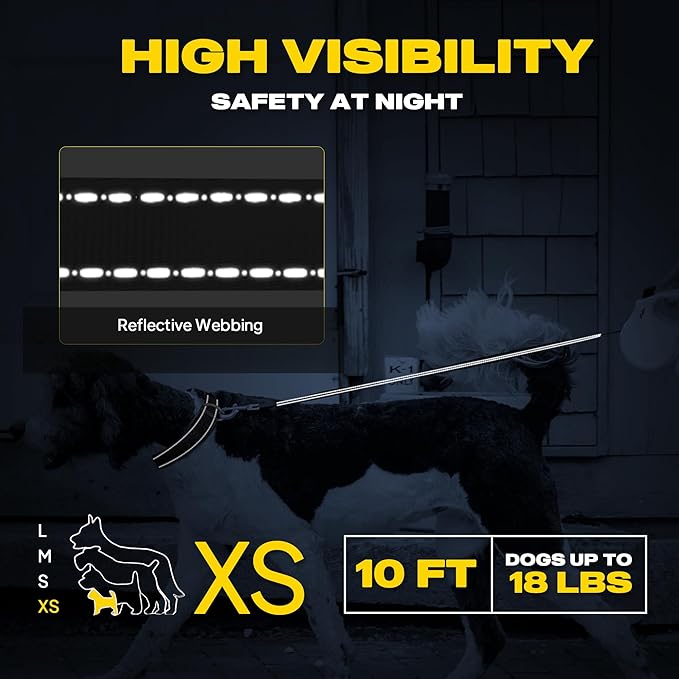 - HEAVY DUTY, DURABLE & STEADY - 10 ft high strength nylon tape with durable rustproof swivel hook and steady impact-resistant ABS material, suitable for Extra Small dogs or cats up to 18 lbs. Top durability Internal Coil Spring for Consistent Retraction several years.