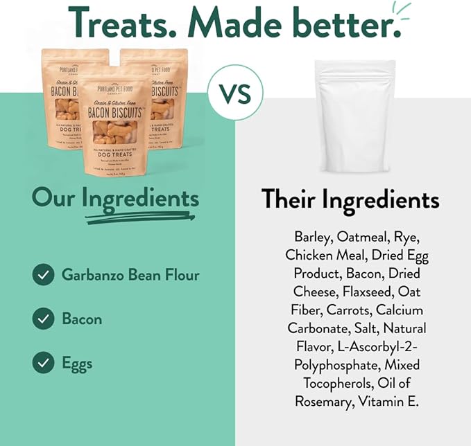 Portland Pet Food Company Bacon Dog Treats Healthy Biscuits for Large Medium & Small Dogs - Grain-Free, Human-Grade, All Natural Cookies, Snacks & Training Treats - Made in The USA - 3 Pack (5 oz)