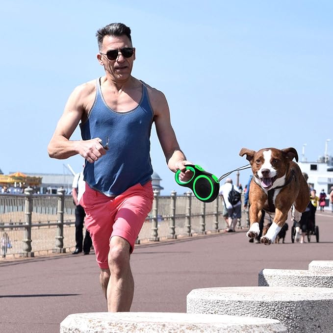 - Walk Your Dog with Fun -- 1 hand Braking & Locking system allows to freely adjust the dog leash cable to a length where your pet friends feel ease. Pay attention to locking the traction rope before it is pulled to the end to avoid damage to the retractable function.