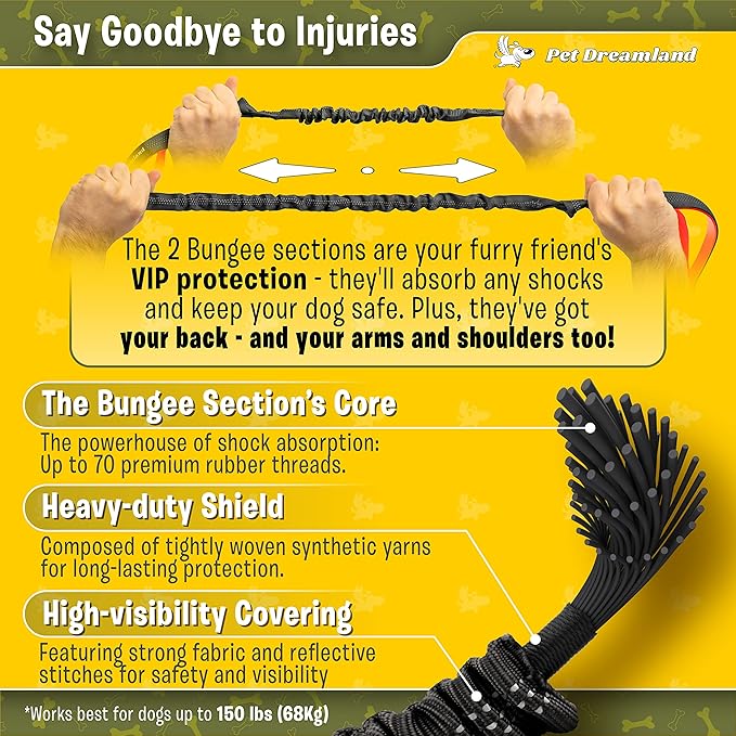 - Comfort and Safety First: The bungee leash design absorbs shocks and protects your pet's neck from any strain, while the running dog leash's hands-free design keeps your hands free for added safety.