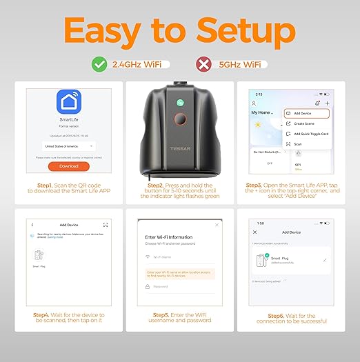 - Wireless Remotely Control: The smart plug has longer WiFi connection range; You can control the outdoor switch anywhere for your living room and yard like lights and fans via free smart life app; With notification settings, never worry about whether the lights turned off or not when you are outside; Notice: support 2.4Ghz Wifi only, dual band (2.4G and 5G) WIFI need to set a separate 2.4G channel