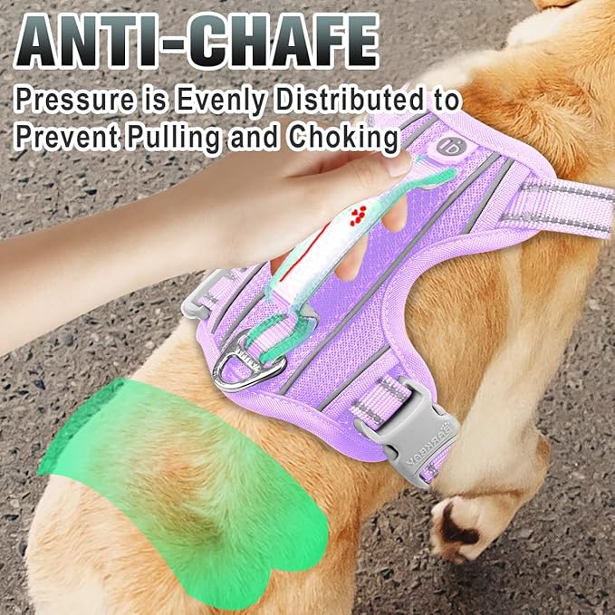 BARKBAY No Pull Dog Harness Large Reflective Dog Harness with Front Clip and Easy Control Handle for Walking Training Running with ID tag Pocket(Violet Purple,M)